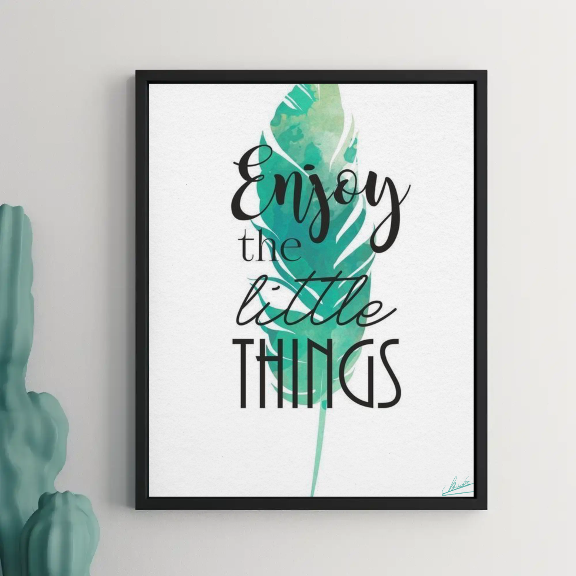 “Enjoy the Little Things” is more than just a quote—it’s a mindset. This exclusive digital wall art pairs a serene green watercolor leaf with stylish typography to create a design that’s both uplifting and visually soothing. Ideal for modern homes, cozy corners, or mindful living spaces, this printable artwork adds a touch of nature and a breath of positivity to your walls.