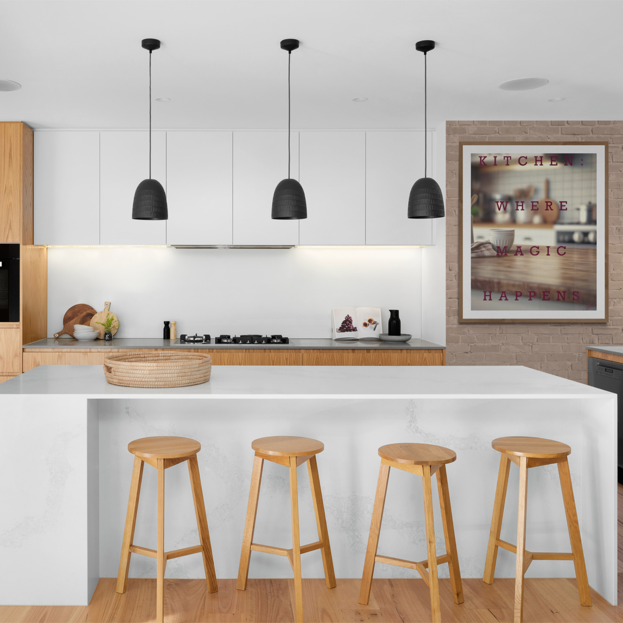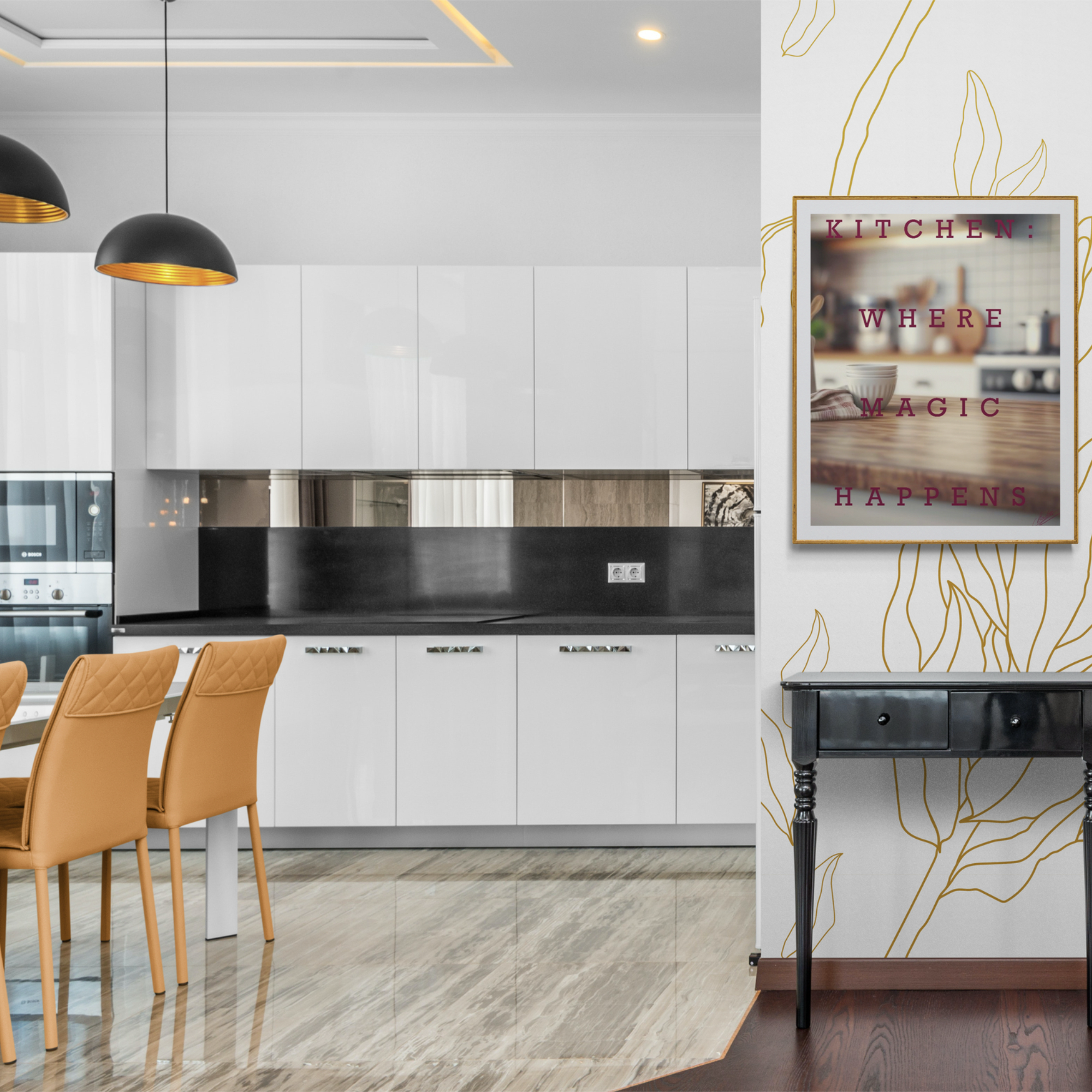 KITCHEN: WHERE MAGIC HAPPENS is a vibrant, signature digital wall art design that honors the soul of your home. More than a place to cook — the kitchen is where flavors are shared, stories unfold, and memories are made.