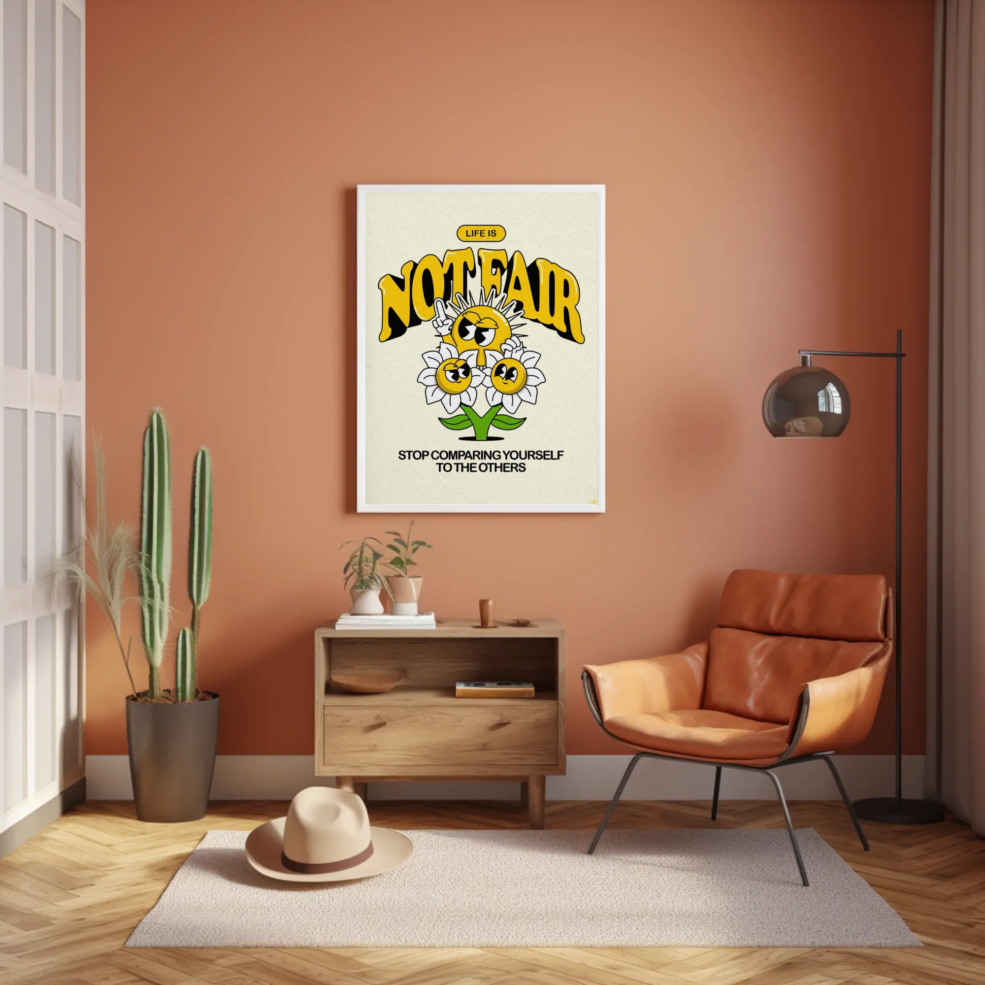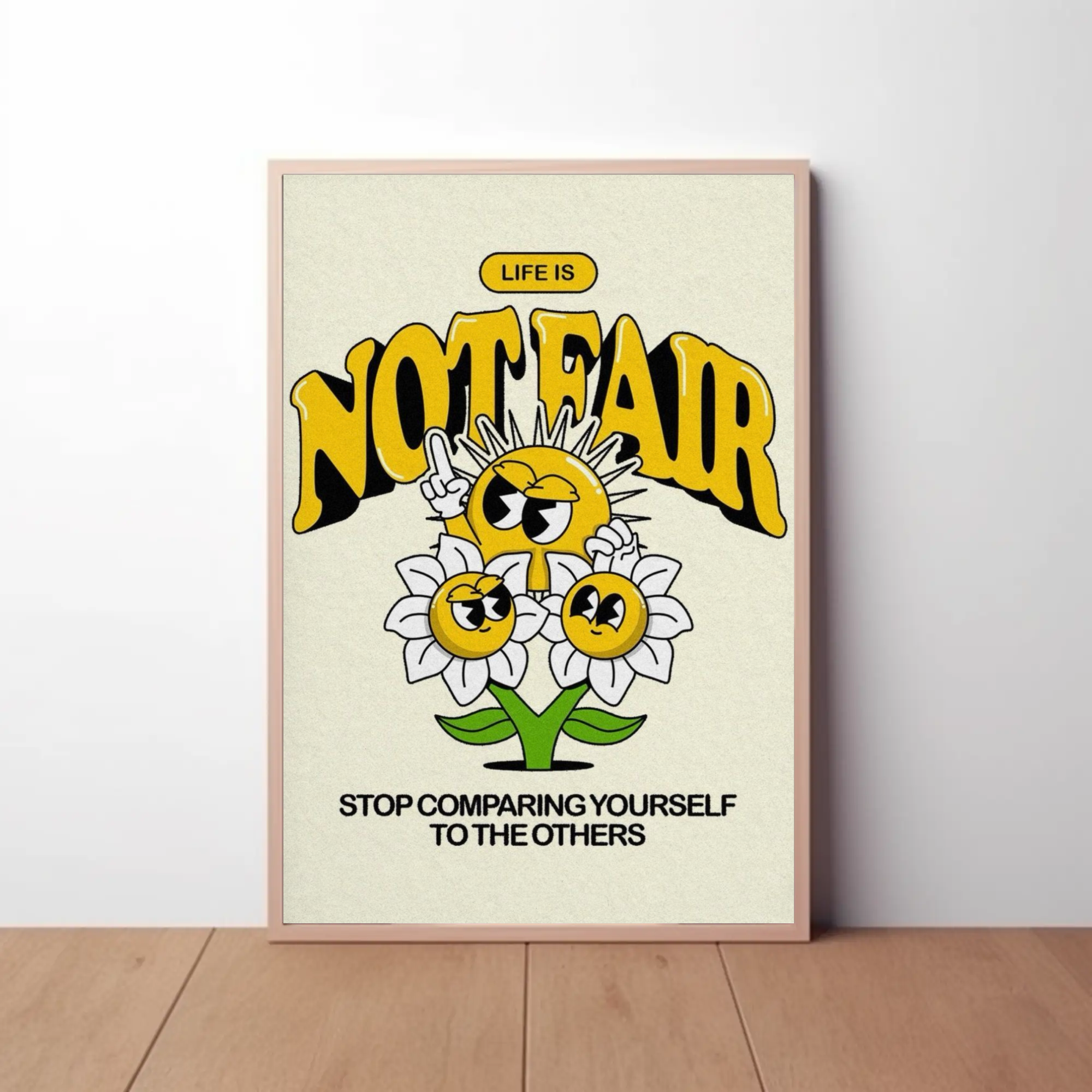 “Life is NOT FAIR – Stop Comparing Yourself to the Others” — a striking and honest message that encourages self-acceptance in a world obsessed with comparison.