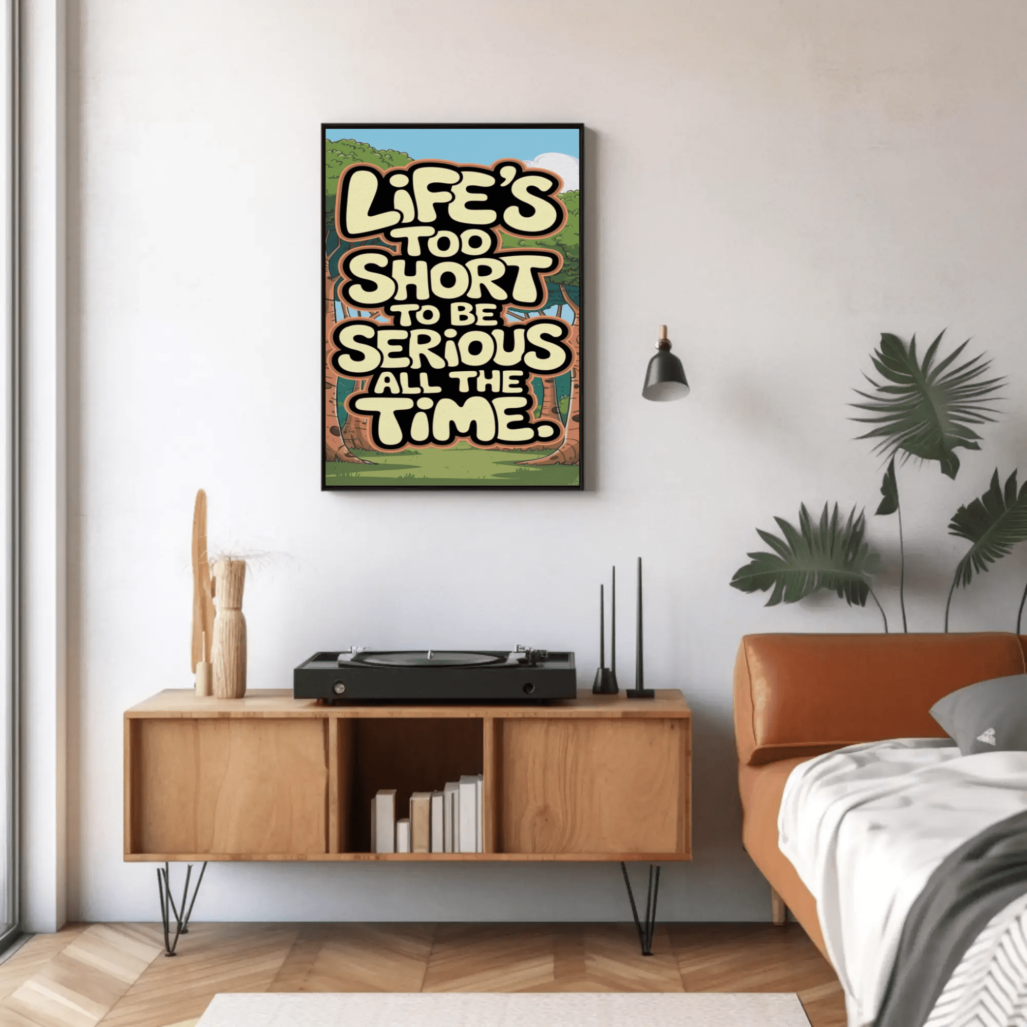 This design blends humor and positivity, making it a perfect daily reminder to loosen up, enjoy life, and never take things too seriously. With its lively typography and uplifting style, it’s the kind of art that sparks smiles the moment someone walks into the room.
