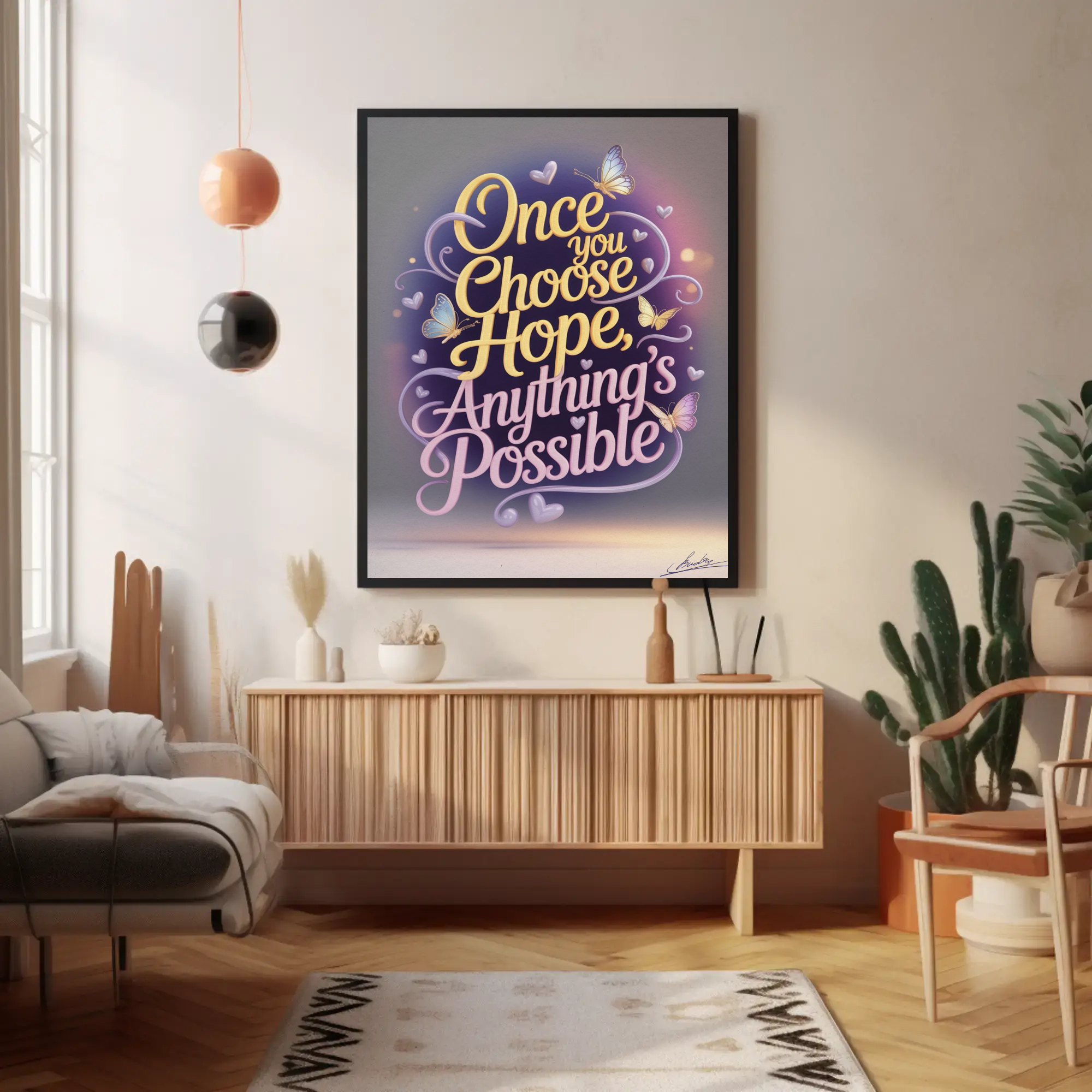 Designed with elegant typography and a minimalist aesthetic, this digital wall art piece serves as a constant reminder to choose hope, even in challenging times. Whether displayed in your home, office, or personal sanctuary, it inspires a mindset of possibility and perseverance.