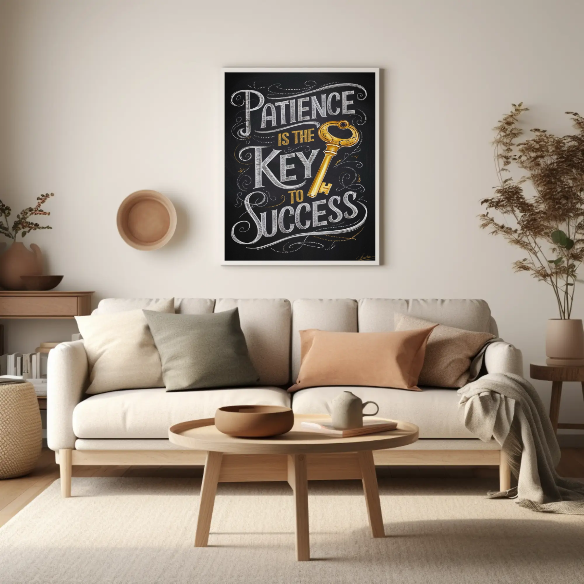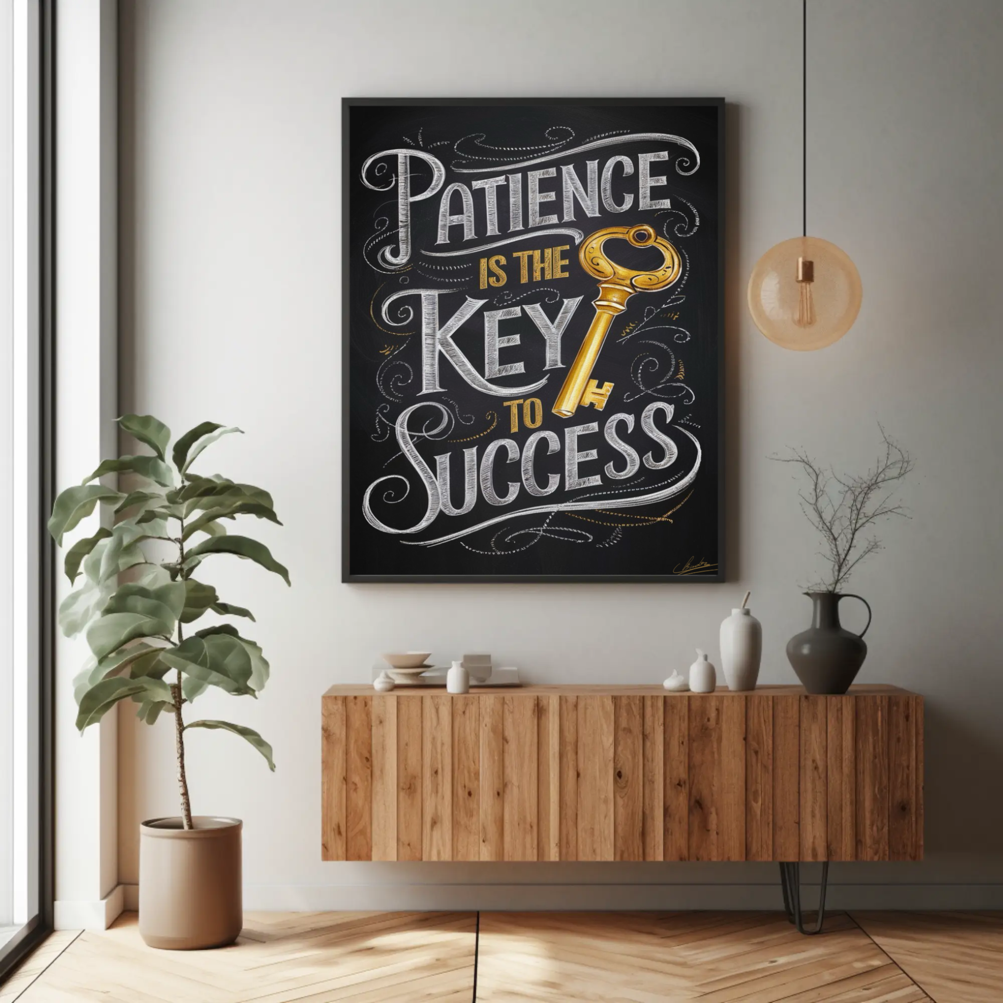Ideal for home offices, study areas, or any space where motivation is needed, this printable artwork serves as a daily reminder that patience is a crucial ingredient in achieving success.