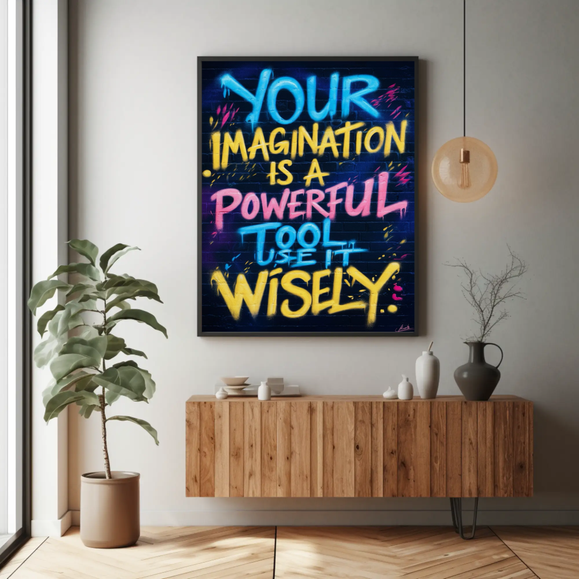 Designed with elegant typography and a minimalist aesthetic, this artwork seamlessly blends into any space, adding a touch of inspiration to your surroundings. Whether displayed in your home, office, or creative studio, it serves as a constant reminder of the boundless potential within you.